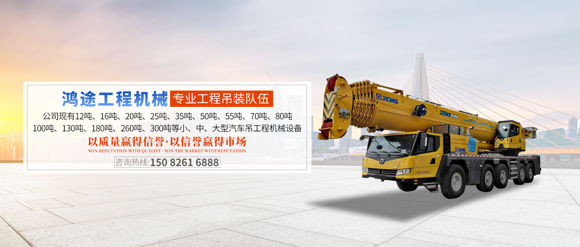 宜賓鴻途工程機械有限責任公司成立于2008年5月,經過不斷發展,已形成一支綜合實力雄厚的專業工程吊裝隊伍。公司現有12噸、16噸、20噸、25噸、35噸、50噸、55噸、70噸、80噸、100噸、130噸、180噸、260噸、...